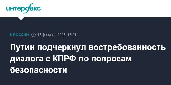 Москва. 13 февраля. INTERFAX.RU - Диалог властей с КПРФ по вопросам обеспечения безопасности страны в данный момент особенно востребован, заявил президент Владимир Путин на встрече с лидером коммунистов Геннадием Зюгановым.