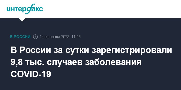 Москва. 14 февраля. INTERFAX.RU - Суточный прирост новых заболевших коронавирусной инфекцией в РФ составил 9 826 случаев, следует из данных оперативного штаба, обнародованных во вторник.
