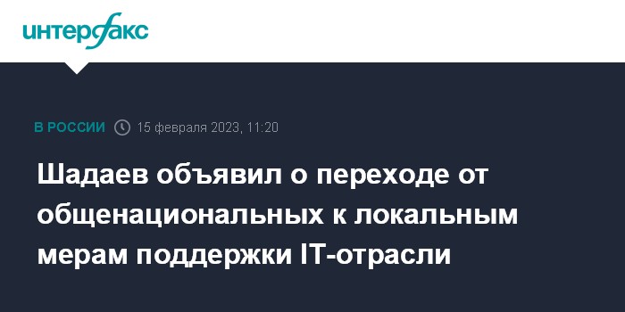 Москва. 15 февраля. INTERFAX.RU - Глава Минцифры Максут Шадаев считает, что российская IT-отрасль уже получила общенациональные меры поддержки, и сейчас нуждается в локальной помощи отдельным сегментам.