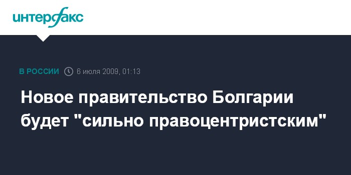 Москва. 6 июля. ИНТЕРФАКС - Сильно правоцентристским будет новое правительство Болгарии, заявил, комментируя предварительные итоги состоявшихся выборов, председатель победившей партии ГЕРБ Цветан Цветанов, передает телеканал "Вести-24"