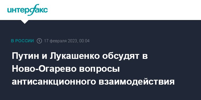Путин и Лукашенко обсудят в Ново-Огарево вопросы антисанкционного взаимодействия