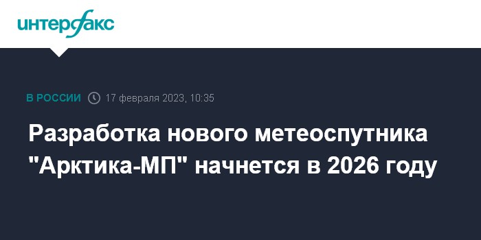 Москва. 17 февраля. INTERFAX.RU - Разработку гидрометеорологического аппарата "Арктика-МП" начнут в 2026 году, сообщили в "Роскосмосе" в пятницу.