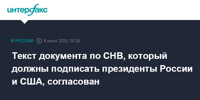 Текст документа по СНВ, который должны подписать президенты России и США, согласован