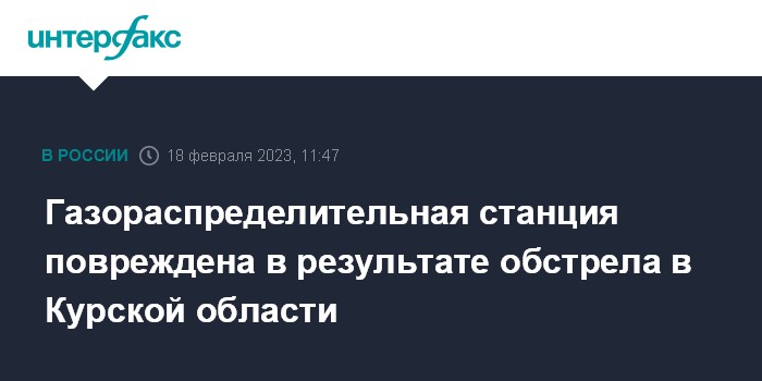 Москва. 18 февраля. INTERFAX.RU - Электроснабжение нарушено в двух населенных пунктах в Курской области после обстрела с территории Украины, также повреждена газораспределительная станция, сообщил губернатор региона Роман Старовойт.