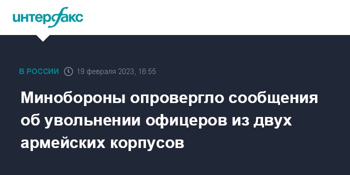 Москва. 19 февраля. INTERFAX.RU - Минобороны России в воскресенье опровергло сообщения об увольнении офицеров 1-го Донецкого и 2-го Луганского армейских корпусов после их вхождения в состав российских Вооруженных сил.