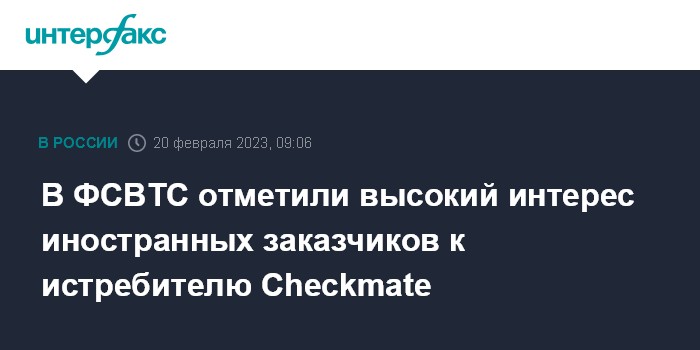 Москва. 20 февраля. INTERFAX.RU - Потенциальные зарубежные покупатели проявляют повышенный интерес к новому российскому легкому истребителю пятого поколения Checkmate, сообщил "Интерфаксу" представитель Федеральной службы по военно-техническому сотрудничеству (ФСВТС) на выставке IDEX-2023.