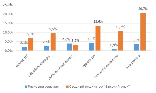 *Рисковые реестры: компании, отсутствующие по юр.адресу по данным ФНС; юр.лица, имеющие задолженность по уплате налогов; Реестр недобросовестных поставщиков; юр.лица, в состав исполнительных органов которых входят дисквалифицированные лица; и др.