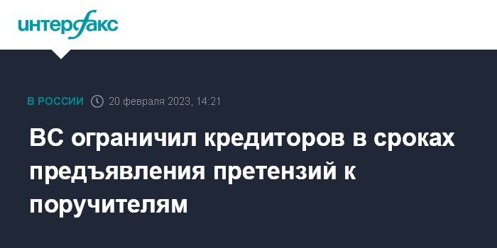 ВС ограничил кредиторов в сроках предъявления претензий к поручителям