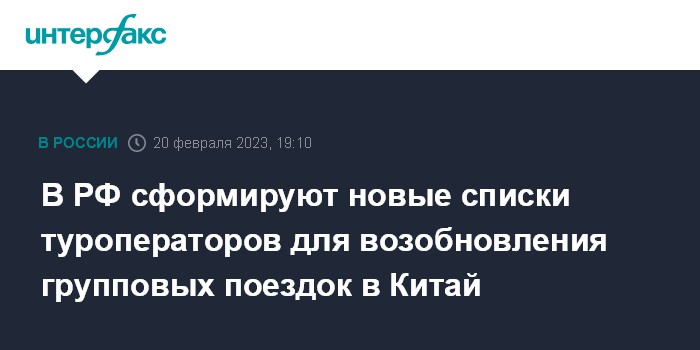Москва. 20 февраля. INTERFAX.RU - Россия и Китай должны предоставить обновленные списки туркомпаний для возобновления групповых безвизовых турпоездок между странами, потому что текущие списки актуальны до апреля, сообщили "Интерфаксу" в пресс-службе Минэкономразвития.