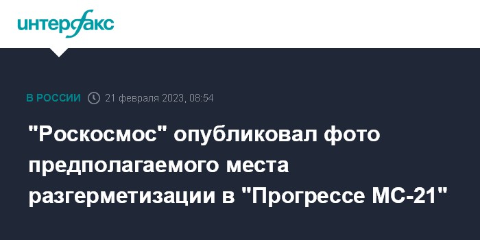 По словам исполнительного директора "Роскосмоса" по пилотируемым программам Сергея Крикалева, разгерметизация корабля "Прогресс МС-21" была похожа на ситуацию, произошедшую в декабре с кораблем "Союз МС-22".