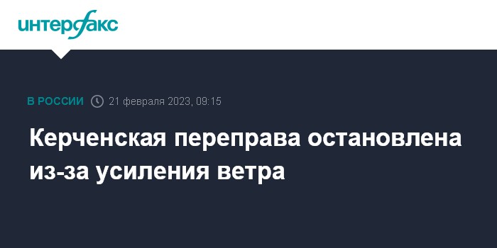 Москва. 21 февраля. INTERFAX.RU - Работа Керченской паромной переправы временно остановлена из-за сильного ветра, сообщает Главное управление МЧС по Крыму.