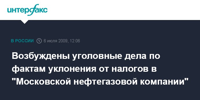 Возбуждены уголовные дела по фактам уклонения от налогов в "Московской нефтегазовой компании"