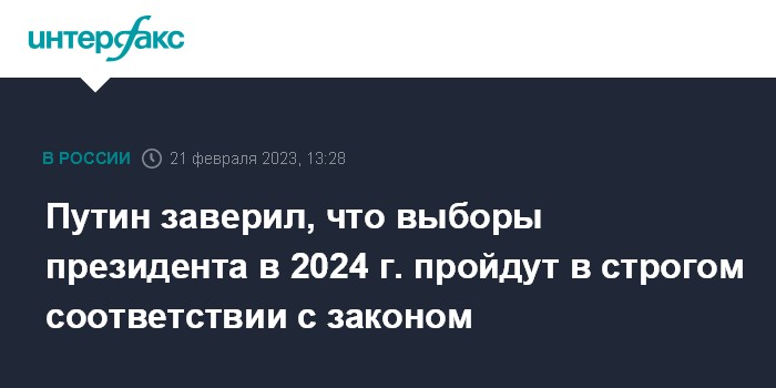 Путин заверил, что выборы президента в 2024 г. пройдут в строгом соответствии с законом