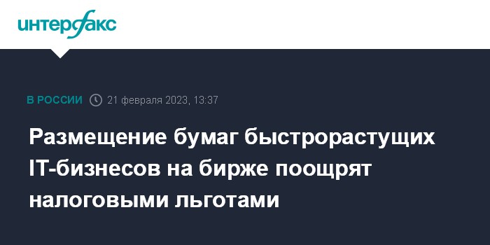 Размещение бумаг быстрорастущих IT-бизнесов на бирже поощрят налоговыми льготами