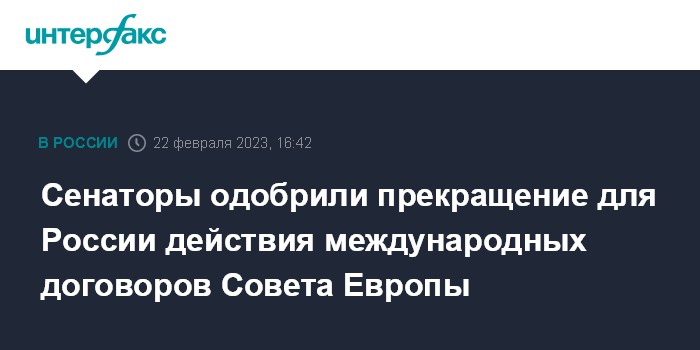 Москва. 22 февраля. INTERFAX.RU - Совет Федерации проголосовал за закон, который прекращает действие в отношении России 21 международного договора Совета Европы.