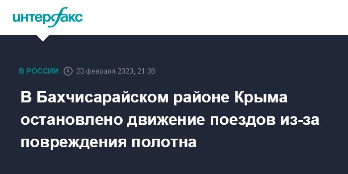 "23 февраля в 2023 года в 19:55 в Центр управления в кризисных ситуациях поступило сообщение о том, что в Бахчисарайском районе в селе Почтовое произошло повреждение железнодорожного полотна. В результате происшествия остановлено движение электричек и поездов", - сказали в главке.