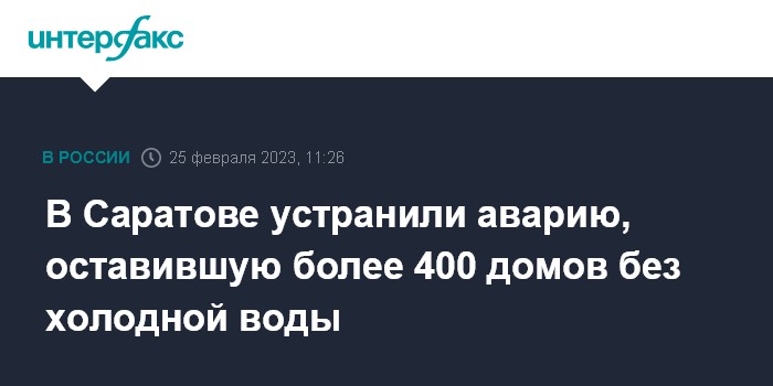Москва. 25 февраля. INTERFAX.RU - Коммунальные службы Саратова ликвидировали крупную аварию на водопроводных сетях (ХВС), сообщили "Интерфаксу" в субботу в мэрии.
