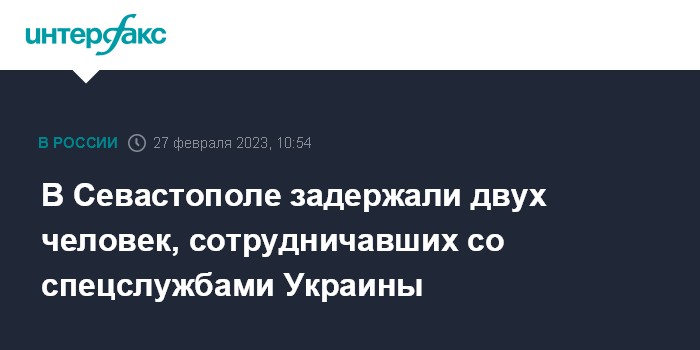 Москва. 27 февраля. INTERFAX.RU - ФСБ сообщила о задержании двух жителей Севастополя, сотрудничавших с украинскими спецслужбами: за деньги они согласились передать сведения об объектах российских военных.