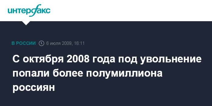 С октября 2008 года под увольнение попали более полумиллиона россиян