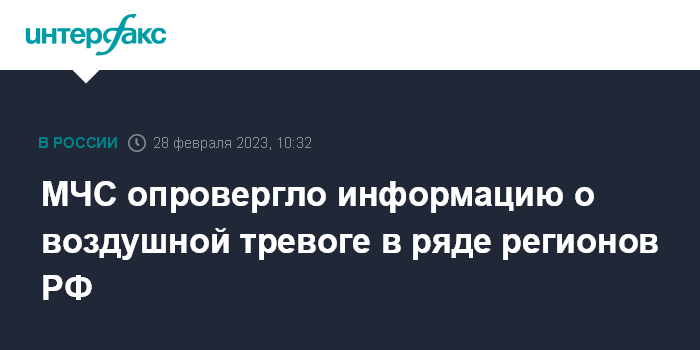 МЧС опровергло информацию о воздушной тревоге в ряде регионов РФ