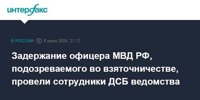 Задержание офицера МВД РФ, подозреваемого во взяточничестве, провели сотрудники ДСБ ведомства