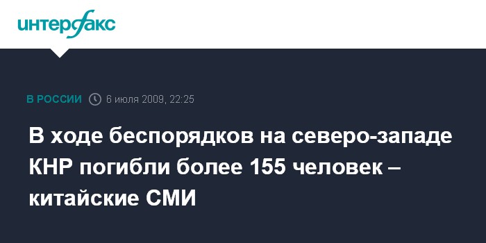 В ходе беспорядков на северо-западе КНР погибли более 155 человек – китайские СМИ