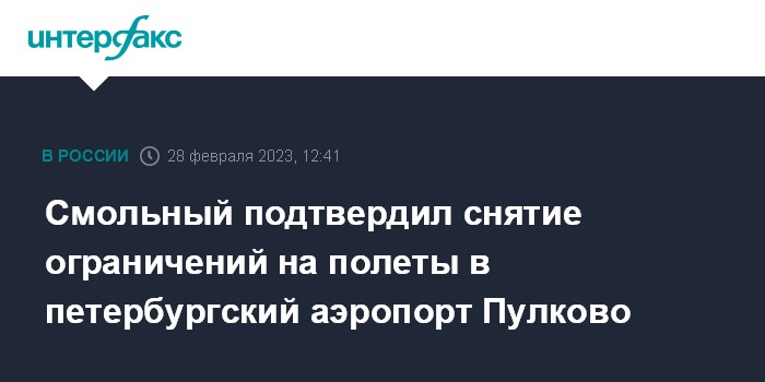 Смольный подтвердил снятие ограничений на полеты в петербургский аэропорт Пулково