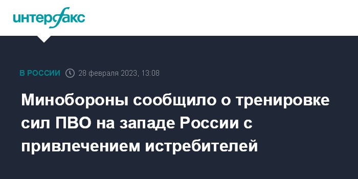 Москва. 28 февраля. INTERFAX.RU - Минобороны сообщило, что на западе России прошла тренировка дежурных сил ПВО с отработкой взаимодействия с гражданскими органами, были задействованы истребители.