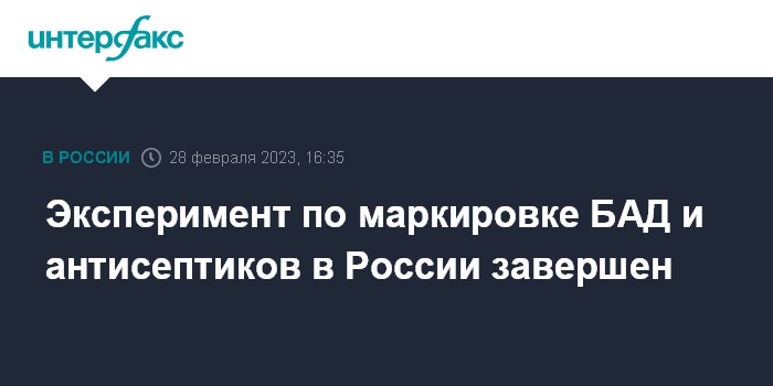 Москва. 28 февраля. INTERFAX.RU - Центр развития перспективных технологий (ЦРПТ, оператор Национальной системы маркировки товаров "Честный знак") сообщил во вторник о завершении пилотных проектов по маркировке биологически активных добавок (БАД) и антисептиков.