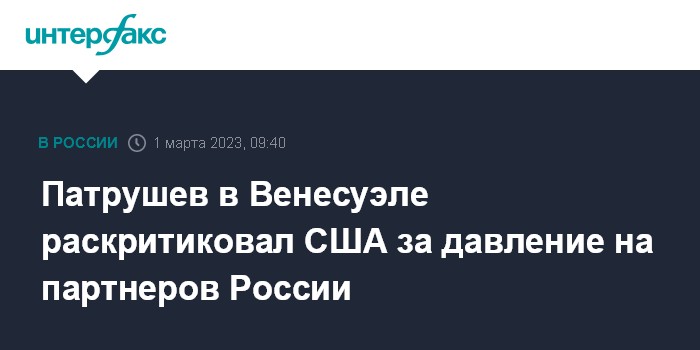 Патрушев в Венесуэле раскритиковал США за давление на партнеров России