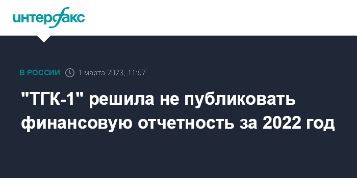 "ТГК-1" решила не публиковать финансовую отчетность за 2022 год