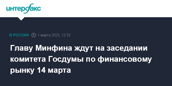 "У нас предстоит отчет правительства ну и, соответственно, мы по профилю должны заслушать отчет министра финансов. Есть предложение, мы согласование проводили с Антоном Германовичем (глава Минфина - ИФ), на вторник, после заседания Госдумы, 14 марта", - сказал Аксаков.