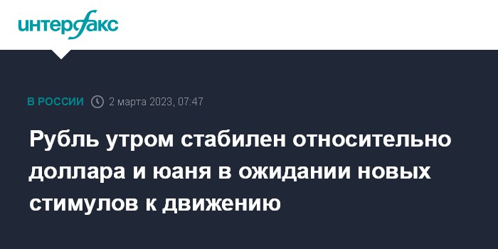 Рубль утром стабилен относительно доллара и юаня в ожидании новых стимулов к движению