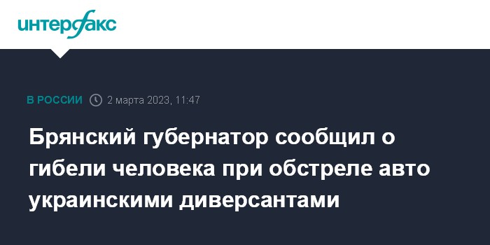 Брянский губернатор сообщил о гибели человека при обстреле авто украинскими диверсантами