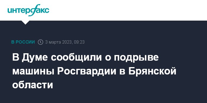 В Думе сообщили о подрыве машины Росгвардии в Брянской области