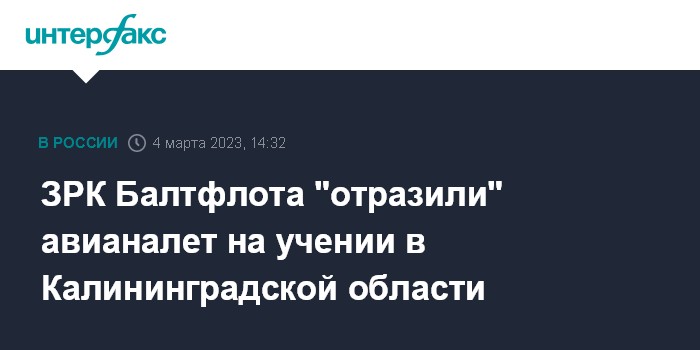 Москва. 4 марта. INTERFAX.RU - На Балтийском флоте прошло учение с зенитными ракетными комплексами (ЗРК) "Тор-М2" по отражению воздушной атаки на промышленные объекты Калининградской области, сообщили в пресс-службе флота.