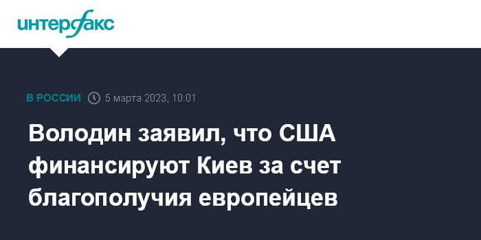 Володин заявил, что США финансируют Киев за счет благополучия европейцев