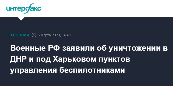 Военные РФ заявили об уничтожении в ДНР и под Харьковом пунктов управления беспилотниками