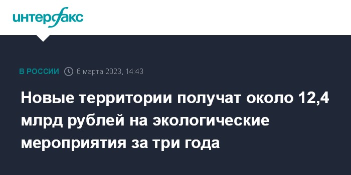 Новые территории получат около 12,4 млрд рублей на экологические мероприятия за три года