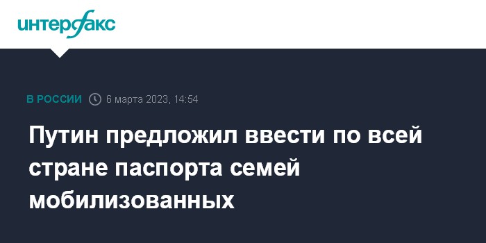 Путин предложил ввести по всей стране паспорта семей мобилизованных