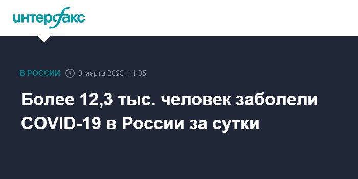 Москва. 8 марта. INTERFAX.RU - Суточный прирост новых заболевших коронавирусной инфекцией в РФ составил 12 320 случаев, следует из данных оперативного штаба, обнародованных в среду.