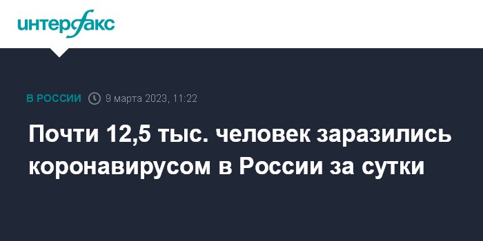 Москва. 9 марта. INTERFAX.RU - Суточный прирост новых заболевших коронавирусной инфекцией в РФ составил более 12,4 тыс. случаев, скончались 40 пациентов с COVID-19, следует из данных оперативного штаба, обнародованных в четверг.