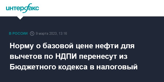 Норму о базовой цене нефти для вычетов по НДПИ перенесут из Бюджетного кодекса в налоговый