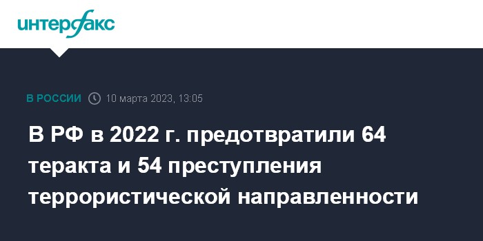 В РФ в 2022 г. предотвратили 64 теракта и 54 преступления террористической направленности