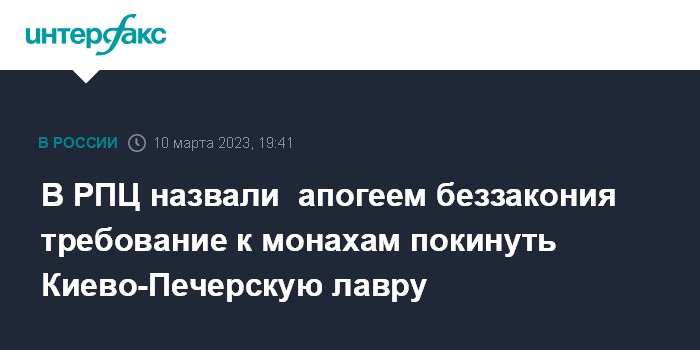 Москва. 10 марта. INTERFAX.RU - В Московском патриархате выразили возмущение по поводу решения властей Украины выселить монахов Украинской православной церкви из Киево-Печерской лавры.