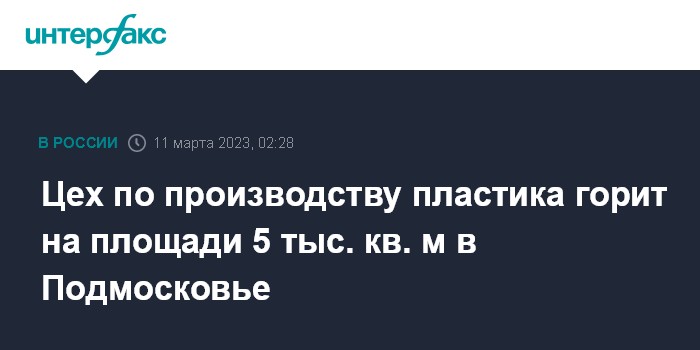 Москва. 11 марта. INTERFAX.RU - Огонь охватил кровлю цеха по производству пластика в Московской области на площади 5 тыс. кв. м с последующим обрушением кровли, сообщила пресс-служба МЧС РФ в субботу.