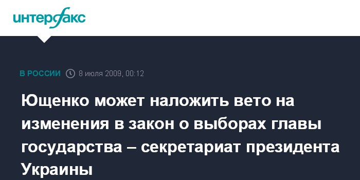Киев. 8 июля. ИНТЕРФАКС-УКРАИНА - В секретариате президента Украины не исключают, что глава государства Виктор Ющенко ветирует изменения к закону о президентских выборах, которые предложены фракциями Партии регионов и БЮТ.