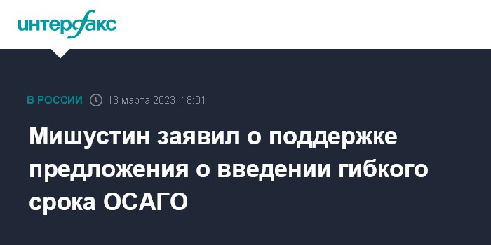 Москва. 13 марта. INTERFAX.RU - Правительство поддерживает инициативу о введении гибкого срока действия договора ОСАГО, заявил премьер-министр РФ Михаил Мишустин.