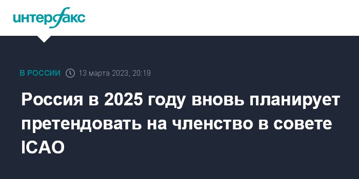 Москва. 13 марта. INTERFAX.RU - Россия в 2025 году планирует вновь претендовать на членство в совете Международной организации гражданской авиации (ICAO), куда РФ не смогла попасть по итогам голосования в прошлом году, говорится в докладе главы Росавиации Александра Нерадько к итоговому заседанию коллегии ведомства.