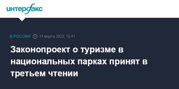 Москва. 14 марта. INTERFAX.RU - Госдума приняла в третьем чтении закон о туризме на особо охраняемых природных территориях (ООПТ), он вступит в силу 1 сентября, сообщила пресс-служба палаты.